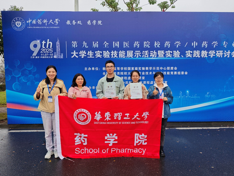 2025年11月7-9日,第九届全国医药院校药学/中药学专业大学生实验技能展示活动在江苏南京成功举办。我院2022级药学专业本科生石欣瑶和瞿周翰携手参赛,凭借扎实的专业功底与出色的实操能力,分别荣获二等奖和三等奖。